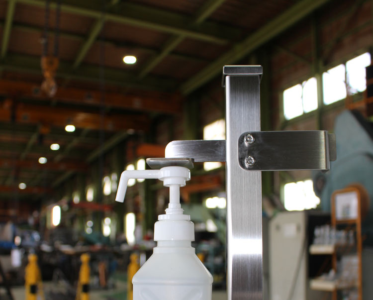 シンプル構造でお手入れらくらく、手をかざす高さが地面から65cmです。ポンプの高さを変えることで様々なボトルに対応。